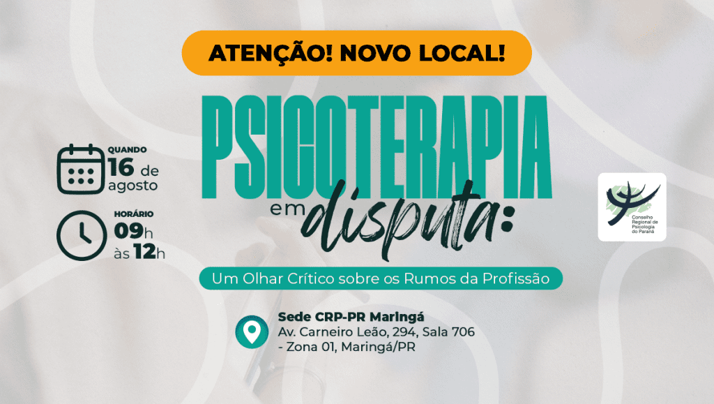 No dia 16 de agosto, das 9h às 12h, a Sede do CRP-PR em Maringá será o palco do evento “Psicoterapia em disputa: um olhar crítico sobre os rumos da profissão”. A atividade, alusiva ao Dia da Psicologia (celebrado em 27 de agosto), propõe um espaço de reflexão, diálogo e troca de saberes sobre a prática da psicoterapia e os diferentes aspectos que envolvem sua atuação profissional, incluindo os debates sobre processos legislativos que visam a tornar a prática exclusiva de profissões como a Psicologia e a Medicina Psiquiátrica.