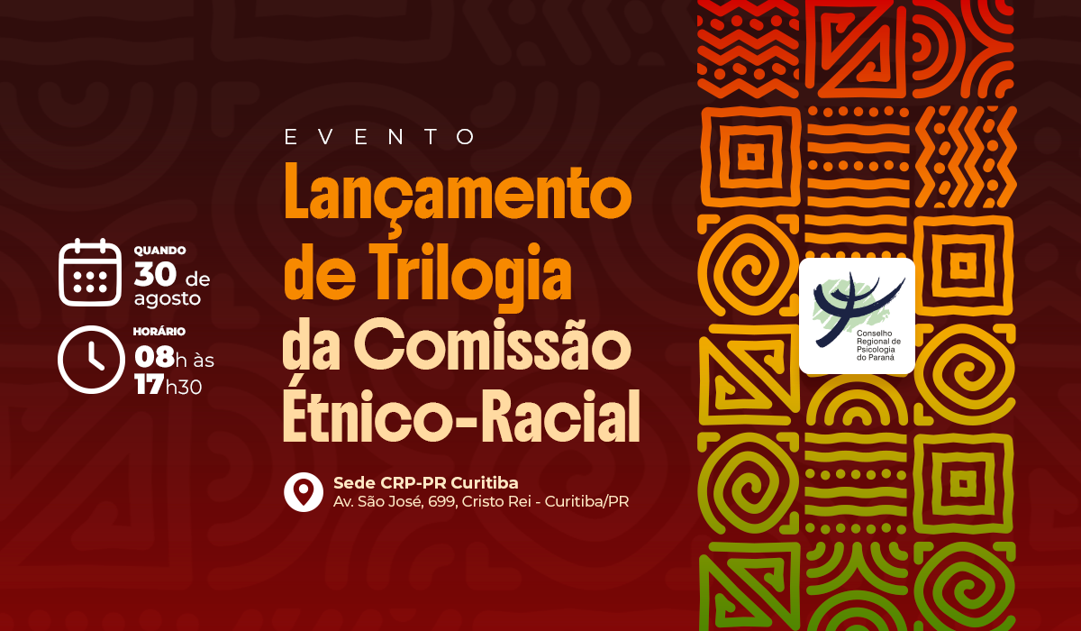 O Conselho Regional de Psicologia do Paraná (CRP-PR), por meio de sua Comissão Étnico-Racial (CER), realiza no próximo dia 30 de agosto, das 08h às 17h30, o lançamento de três materiais de orientação à categoria: os cadernos temáticos “Raízes que Tecem Cuidado: Psicologia e Povos Indígenas” e “Resistências: Psicologia, Negritude e Saúde Mental”, e a cartilha “Cuidar sem Colonizar: Ética, Cultura e Práticas em Psicologia”.