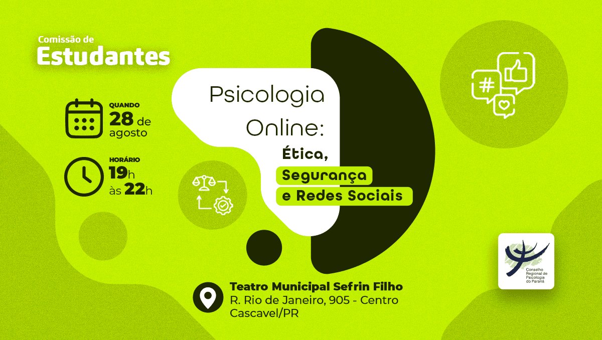 Estas e outras questões serão a linha condutora da Mesa-redonda “Psicologia online: ética, segurança e redes sociais”, promovida pela Comissão de Estudantes do Conselho Regional de Psicologia do Paraná (CRP-PR) em Cascavel no dia 28 de agosto, das 19h às 22h.